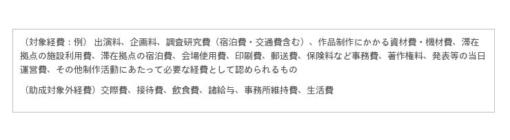 趣旨にある活動を行い、かつ、以下の条件をすべて満たすアーティスト個人