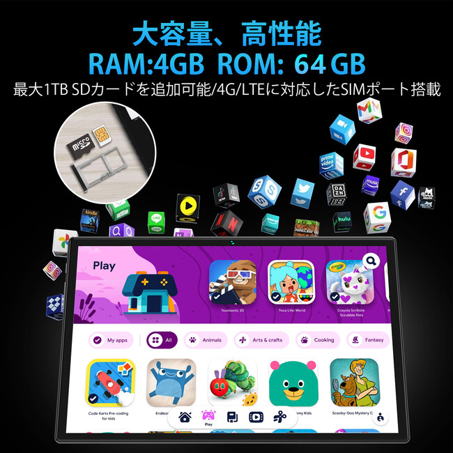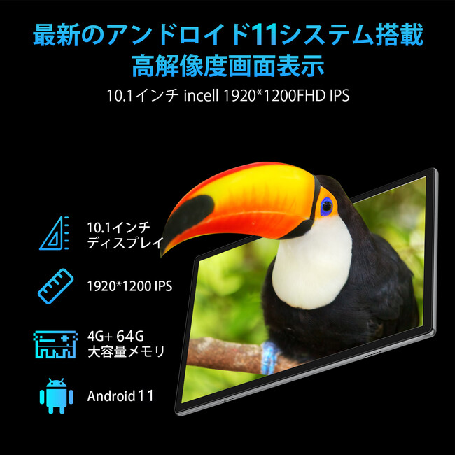 BMAX I10Proタブレットは10インチ/wi-fiモデル/Android 11システム搭載、2.4/5Gwi-fi対応、より安定した接続性能を実現。便利なユーザーインターフェースでより快適にご利用いただけます。操作を楽しむことができます。APPの起動や切り替えが従来よりも速くなり、タブレットをより快適に操作できるようになります。GoogleのGMS認証を受けているため、プリインストールされた Google Playストアからすべてのお気に入りのAPPにアクセスできます。第4世代移動通信4G/LTEに対応したSIMカードスロットを搭載。AU/Softbank/docomoのSIMカードに対応しています。いつでもどこでも高速通信が可能です。