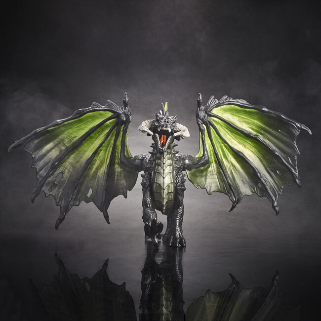 ブラックドラゴンのラコールを、全高約28cm、手足や翼、顎が可動するアクションフィギュアとして立体化。翼を広げると幅約51cmになる大迫力の仕上がりとなっている。