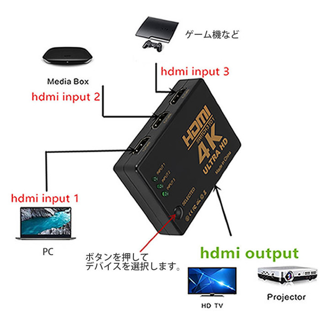 4K対応高画質!「HDMI セレクター 分配器」が本日より販売開始します。