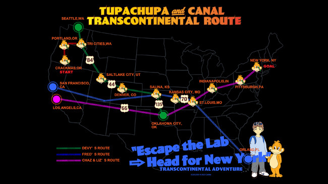 これからチュパチュパの最終目的地ニューヨークまでの3000マイルに及ぶ大陸横断の冒険が始まります。