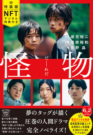日本を代表するストーリーテラー・坂元裕二(脚本/『花束みたいな恋をした』)と映像作家・是枝裕和(監督/『万引き家族』)が初めてタッグを組んで描いた圧巻の人間ドラマ、映画『怪物』。いよいよ6月2日(金)に劇場公開されます。それに先駆けて、完全ノベライズ版が登場。坂元×是枝の“物語”を存分に小説で味わうことができます。また同時発売の特装版は、小説に加えて、NFTデジタル特典付き。特典は、是枝監督の画コンテと、映画の世界観をイメージした風景写真で構成された特別ミニ写真集のセットです。3種のセットのうち1種がランダムで封入された特別限定版です。