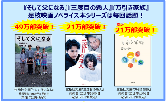 『そして父になる』『三度目の殺人』『万引き家族』・・・是枝映画ノベライズ本シリーズは毎回話題!
