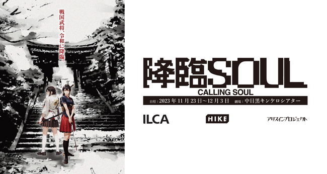 「ILCA × HIKE × アリスインプロジェクト」は、製作する舞台『降臨SOUL』(原作・脚本・演出:松多壱岱)を2023年11月23日(木・祝)から12月3日(日)に中目黒キンケロシアターで上演いたします。あわせて、本作品の出演者を一般オーディションで募集することもお知らせいたします。
