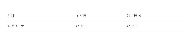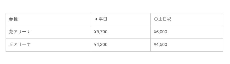 ※芝アリーナは芝生の上に座ってご覧いただくお席です。丘アリーナは、椅子やひな壇にお座り頂くお席です。