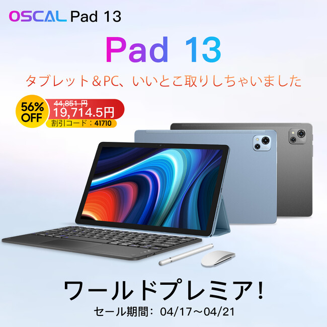 5日間限定で、Oscal Pad 13はAliExpressで4.17から4.21まで最大50%オフの141.99ドル で購入することができます。さらに驚くべきことに、先着200名様にはBluetoothキーボードが無料でついてきます。