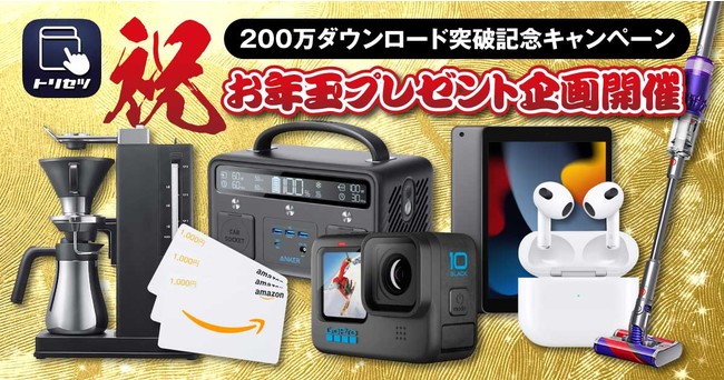 この度、200万ダウンロード突破を記念し、お年玉プレゼントキャンペーンを開催します。