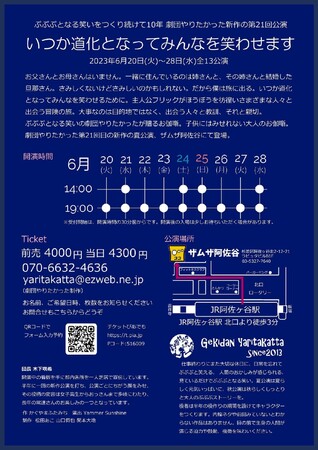 ぷぷぷとなる笑いの劇団やりたかったが贈るお伽噺。子供にはみせれない大人のお伽噺。 劇団やりたかった第21回目の新作の夏公演、ザムザ阿佐谷にて登場。