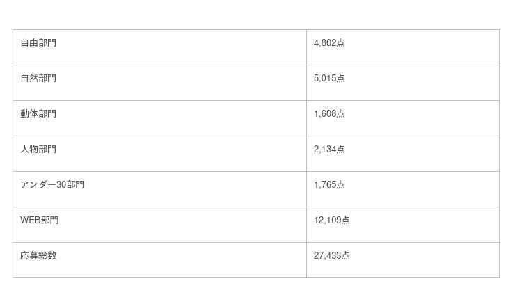 ○募集部門:自由部門/自然部門/動体部門/人物部門/アンダー30部門/WEB部門