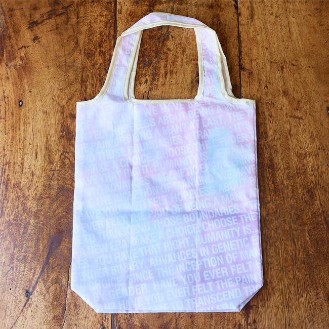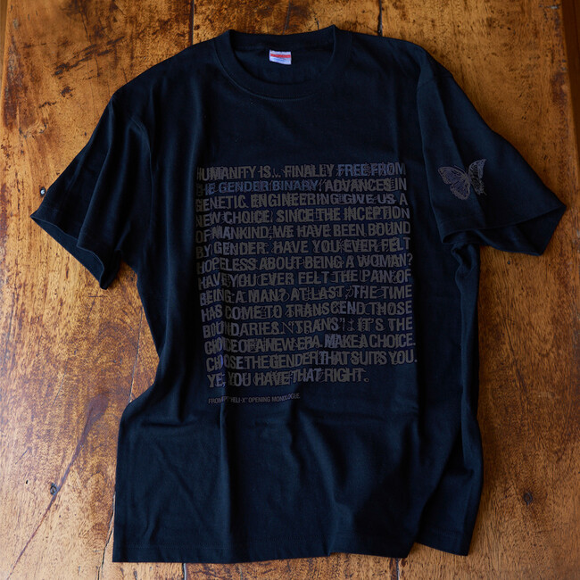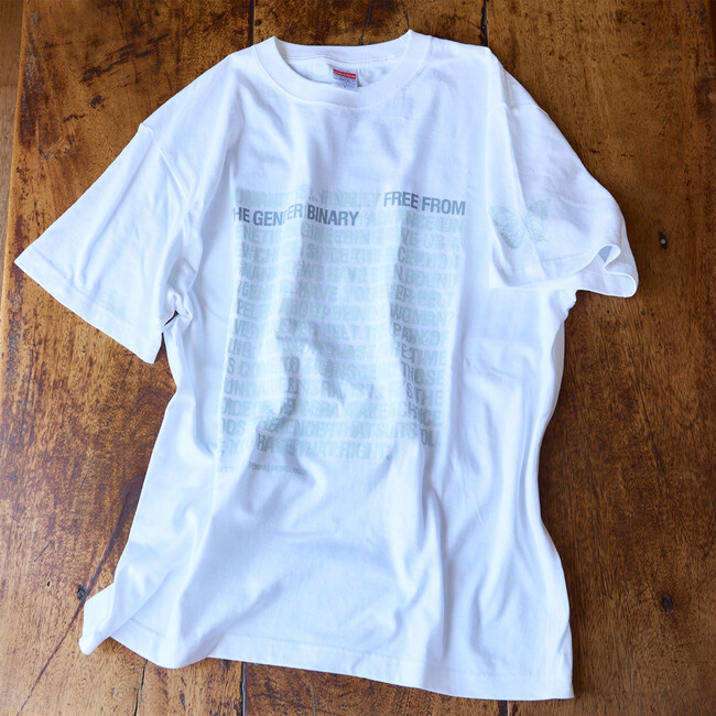 ◯オリジナルグッズ“FREE FROM THE GENDER BINARY”シリーズ:舞台「HELI-X」の冒頭モノローグをタイポグラフィでデザイン化。古田亘氏デザインによる展覧会オリジナルグッズを限定数販売いたします。
