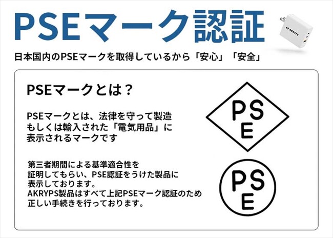 AKRYPS製品は、安心・安全の「PSEマーク」認証製品です!