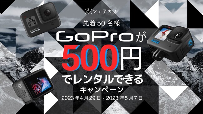 ゴールデンウィーク!!!!!!!!!!! ついに今年もこの季節がやってきます!📸 暖かな気候、、 仲のいいみんなが集まりやすい・自分の時間をたくさん確保できる・家族が集まってレジャーに! 楽しいが詰まっている長期休暇です! シェアカメではそんな最高のゴールデンウィークをより楽しむためのキャンペーンを開催いたします!!📸 【キャンペーン概要】 開催期間:2023年4月29日〜2023年5月7日 対象商品:GoPro HEROシリーズ【8.9.10】 レンタル料金:500円(税込)※通常価格(2泊3日)は3,800円〜6,000円(税込) 【キャンペーンの特徴】 このキャンペーンでは、アクションカメラの代表的なブランドであるGoPro HEROシリーズを、通常価格(2泊3日)は3,800円〜6,000円(税込)のところ500円(税込)でレンタルすることができます。旅行にアウトドアやスポーツなど、さまざまなシーンで活躍するGoProを、気軽にお試しいただけます! 【キャンペーンの参加方法】 1.シェアカメのウェブサイト( https://s-came.jp )にアクセス 2.GoProのカテゴリページ(https://s-came.jp/ic/gopro)から希望の商品を選択する 3.キャンペーン期間を選択して希望する日程で予約に進む 4.会員登録(無料)またはログイン 5.決済をして予約を完了させる(キャンペーン商品に限り送料はお客様負担とさせていただきます:片道平均700円) あとは商品の到着を待つのみです!! 今回のキャンペーンを通じて、GoProをはじめとするアクションカメラの魅力を多くの方にお届けし、アウトドアやスポーツを楽しむすべてのプレイヤーが最高の瞬間を映し出せるようなサポートをお届けいたします! 【本件に関する注意事項】 キャンペーンはシェアカメ会員に限ります。会員登録は無料です。 キャンペーン期間中は、GoPro HEROシリーズ【8.9.10】の在庫がなくなり次第、終了となります。 本キャンペーンは、一人あたり1回限り1台の利用となります。送料はお客様負担とさせていただきます。(片道平均700円)