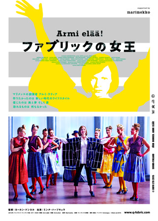 日本でも人気を誇る北欧のファッションブランド「マリメッコ」の創業者アルミ・ラティアの波乱万丈な人生を描いた伝記ドラマ。戦後まもないフィンランド。夫が買収した業務用オイルプリントの会社で働き始めたアルミは、個人向けに綿のファブリックにプリントすることを思いつき、1951 年に新たな会社「マリメッコ」を立ちあげる。全財産を投じて行なったファッションショーは大成功。カラフルで斬新なデザインのファブリックや、女性をレースやコルセットから解放したドレスは大人気となり、事業は軌道に乗り始めるが……。イングマール・ベルイマン監督の名作「ファニーとアレクサンデル」のプロデューサーで、初期マリメッコの役員でもあったヨールン・ドンネルが監督。アルミを演じる女優の劇中劇を交えた巧みな構成で描く。主人公アルミ役に「FC ヴィーナス」のミンナ・ハープキュラ。監督:ヨールン・ドンネル/2015 年製作/85 分/フィンランド