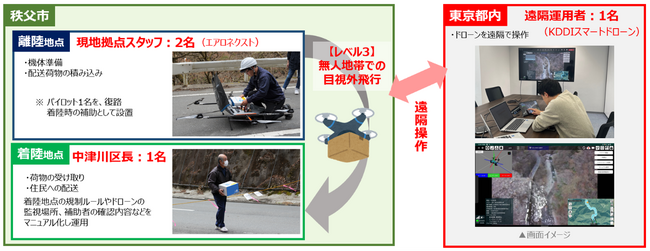 レベル3(無人地帯・目視外飛行)での運用、遠隔地からの操作*6で配送を実施
