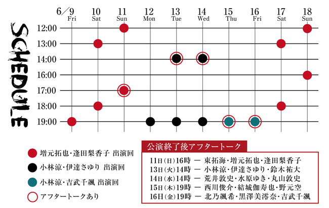 出演者決定と時を同じくしてアフタートークの詳細も発表された。5回全て別の組み合わせと、大所帯ならではの魅力的なスケジュールとなっている。