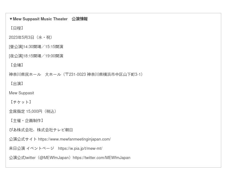 今後のファンクラブ情報は公式twitter(@mewsuppasitjp)でもお知らせいたします。