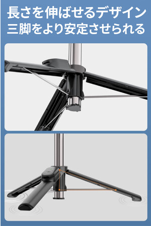さらにより安定させるために長さと高さを調節できる三脚デザイン!