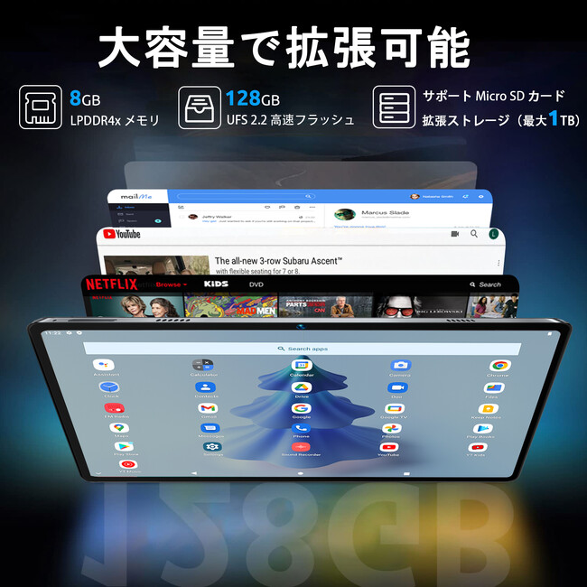 大容量メモリ(8GB+128GB+1TB拡張可能)