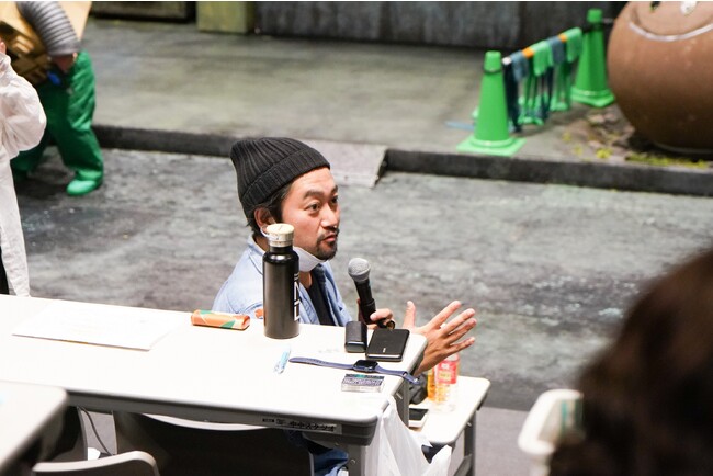 休憩時間を使って市民参加者に話を聞いてみた。話の途中でギターも披露するアリソン・オパオンはフィリピン出身。普段は仕事の傍らシンガーソングライターとしても活躍している。暮らしているのは鶴見だというが、横浜以上にカオスな街だ。前作に引き続いての出演で「今回もタニノさんが参加者を探していると聞いたもので」参加を決めたという。今回は自作の曲を歌うチャンスもあると嬉しそうに話してくれた。