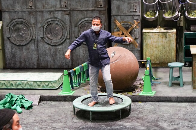 もう一人、あるシーンでは小さなトランポリンの上で踊るビルラ・スニルはインド出身。普通の演劇作品とはだいぶ趣が違うこの作品に取り組んだ感想を「最初は普通のお芝居だと思っていたのだけれど、やってみるとだいぶ違っていて。最初はよくわからなかったのが、最近はだんだん面白くなってきた」とのこと。
