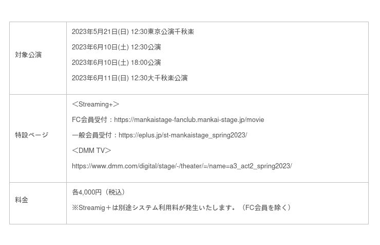 ■MANKAI STAGE『A3!』ACT2! 〜SPRING 2023〜配信&ライブビューイング情報