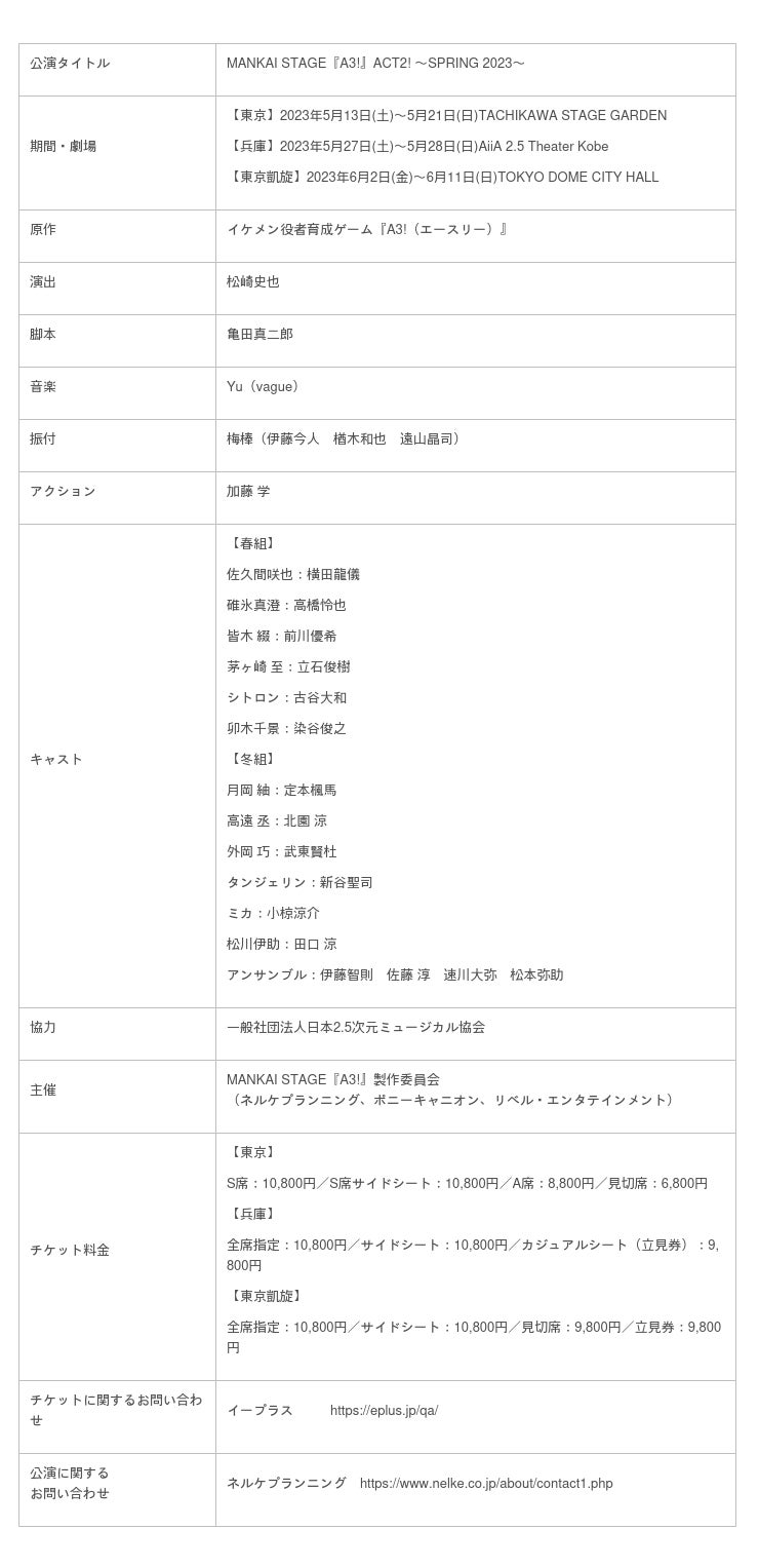 ■MANKAI STAGE『A3!』ACT2! 〜SPRING 2023〜公演概要