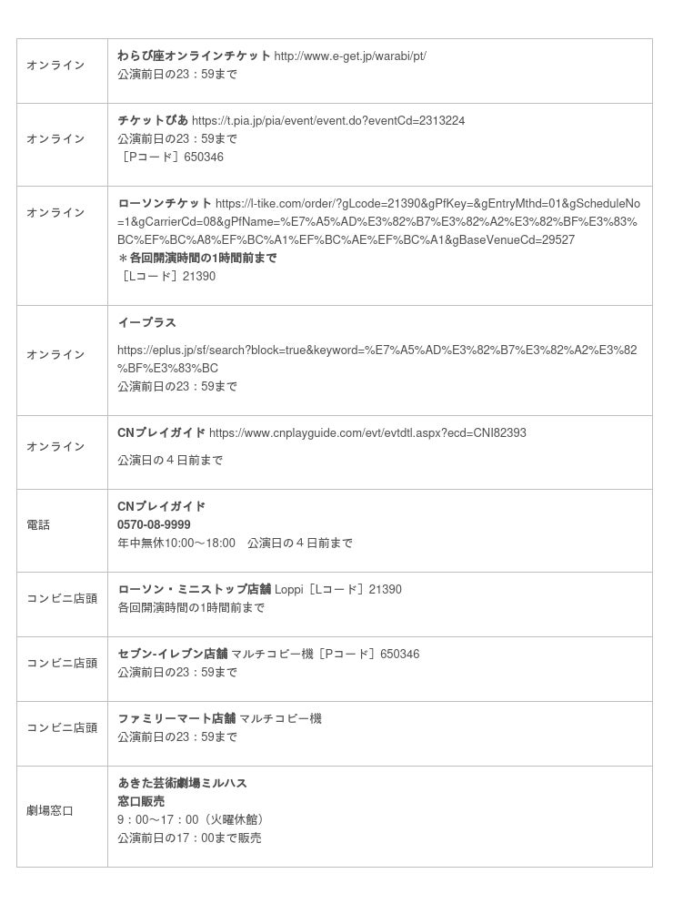 ※各プレイガイドの販売予定枚数終了次第、受付終了となります。ご了承ください。
