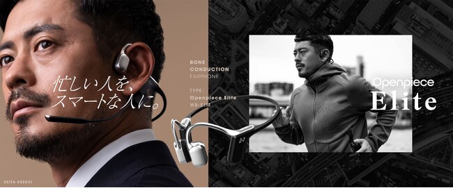 「Openpiece Elite」は骨を通じて音を振動として届けるため、耳穴を密閉することなく周囲の音を聞きながら音楽を楽しむことができる骨伝導イヤホンです。