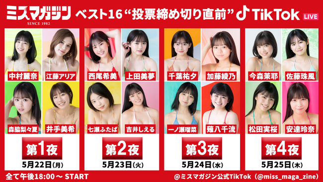 ミスマガジン2023ベスト16が4夜連続でLIVE配信 ミスマガジン2023 ベスト16 ”投票締め切り直前” LIVE配信企画!トークセッションや、視聴者からの質問回答などを実施