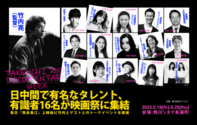 日中間で有名なタレント、有識者16名が映画祭に集結。「竹内亮のドキュメンタリーウィーク」上映後のトークイベントを5月19日より開催