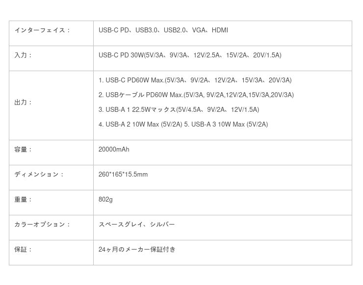 世界1位 20000mAh パワーバンク wPD3./1充電・総出力163W