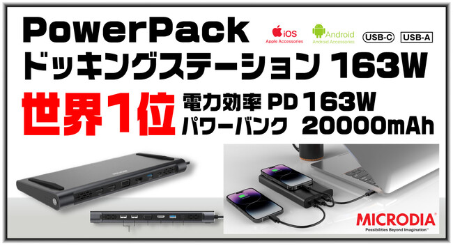 和牛・酒などの日本食品と衛生用品を中心に貿易事業を営む宏福商事合同会社(本社:東京都荒川区)は、MICRODIA社の世界初(2023年3月MICRODIAネット調査による)PowerPackメガパワードッキングステーション20000mAhの取扱いを開始することになりました。 モバイルアクセサリ製造メーカー 「MICRODIA」 www.microdia.com