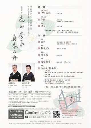 琉球舞踊『志田房子・真木の会』が2023年6月30日(金)に国立劇場(小劇場)(東京都千代田区隼町4-1)にて開催されます。チケットはカンフェティ(運営:ロングランプランニング株式会社、東京都新宿区、代表取締役:榑松 大剛)にて発売中です。