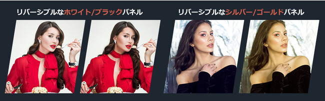 可逆可能なブラック/ホワイトパネルと可逆可能なシルバー/ゴールドパネルが付属します。