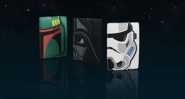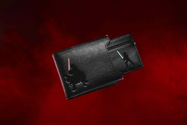 ダース・ベイダー(TM)をフィーチャーした二つ折りウォレットと、ルーク・スカイウォーカー(TM)が描かれたスライド式カードケースのセット。