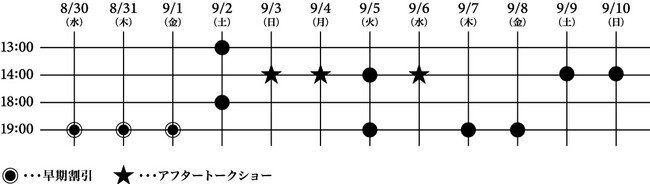 ※早期割引適用回(8/30・31・9/1)は、一般料金のみ500円割引