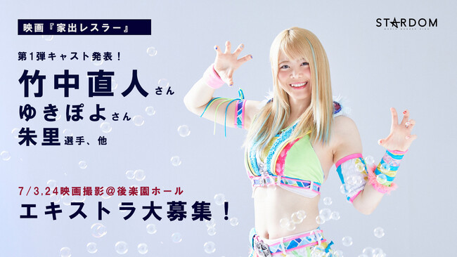 株式会社ブシロード(本社:東京都中野区、代表取締役社長:木谷高明)のグループ会社であり、女子プロレス『スターダム』を運営する株式会社ブシロードファイト(本社:東京都中野区、代表取締役社長:原田克彦)は、STARDOMのエースである岩谷麻優選手の半生を映画化した『家出レスラー』の第1弾キャストを発表致します。また、6月からの本格クランクインに伴いまして、プロレスシーンにおいて重要な役割を担っていただく「ボランティアエキストラ」の皆様を大募集致します。