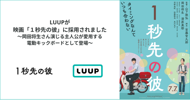 2023年7月7日(金)より全国で上映が開始される映画「1秒先の彼」に、株式会社Luup(本社:東京都千代田区、代表取締役社長兼CEO:岡井大輝、以下「Luup」)が提供するシェアリングサービス「LUUP」の電動キックボードが採用されました。