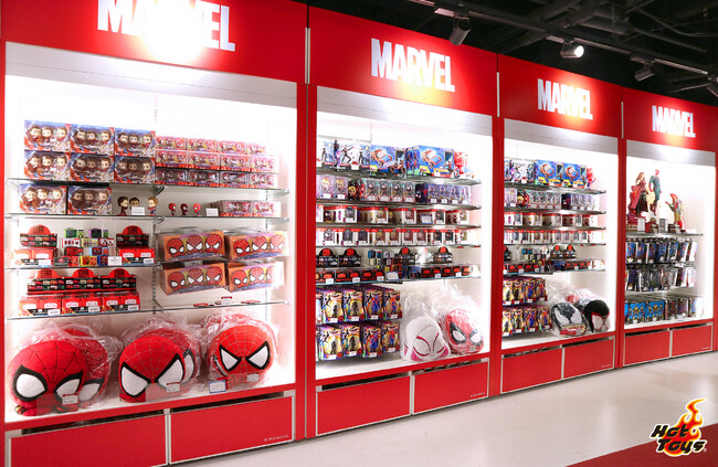 トイサピエンスにて開催中「スパイダーマン/スイング・イントゥ・ザ・マルチバース!」スパイダーマンに染まった店内の様子を公開!