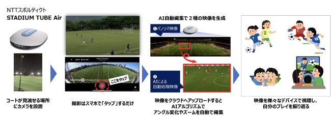 ※STADIUM TUBE は、NTTSportictが提供する圧倒的低コストを実現した世界トップクラスのAIスポーツ撮影ソリューションです。https://stadiumtube.com/lineup/#feature