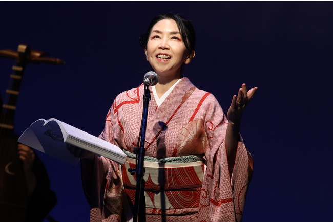 美しい和楽器の演奏、妖艶な舞踊、そして豪華衣装に身を包んだ朗読陣の迫真の演技が織り成す、