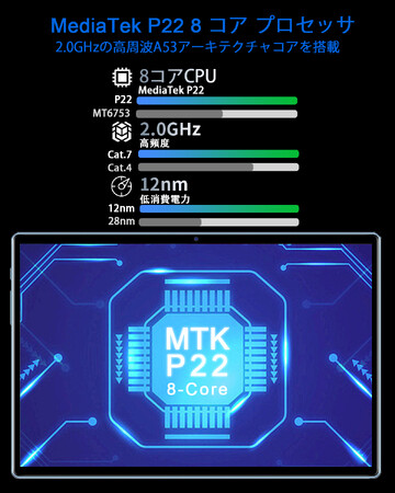 Amazon Android 12 タブレット P20S Media Tek製P22オクタコアプロセッサーを搭載ています。最先端の12nmプロセスにコアパイロット技術を加え、2.0GHzの高性能と高い周波数を維持しながら、低消費電力と低発熱を実現し、終始持続的な高性能と信頼性の高いユーザ体験を提供しています。