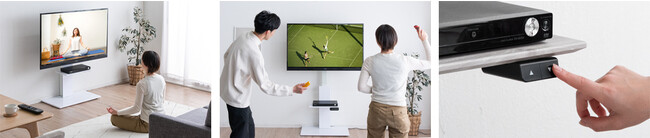 今回発売する2機種は、これまで高価な法人向けで一部見られるような電動式のテレビスタンドをご家庭向けの商品として企画したものです。生活シーンに合わせて簡単にテレビの高さを調節することができ、“メモリー機能”搭載のモデルは記録した高さにワンタッチで高さを調節することができます。