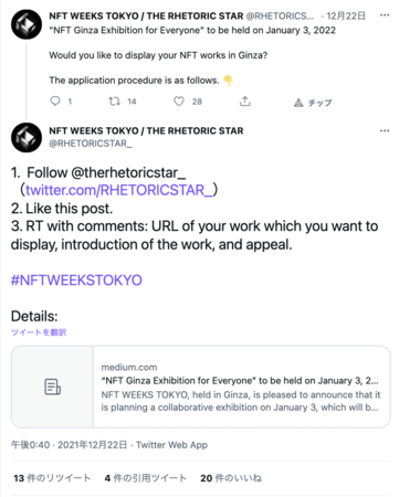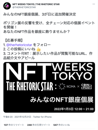 Twitterアカウント:NFT WEEKS TOKYO / THE RHETORIC STAR