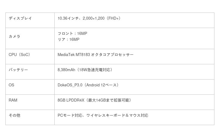 Blackview Tab 11 WiFiにはArcSoft(R) 4.0で強化された16MPのフロントカメラと16MPのリアカメラが搭載。さらに、DokeOS_P 3.0(Android 12ベース)のおかげで、スムーズなタブレット操作が可能となっています。