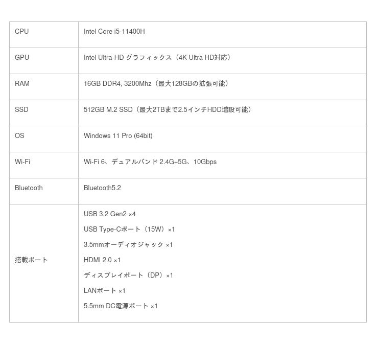 『BLACKVIEW MP200』は183.2×150×75.5mm、690グラムという非常にコンパクトなサイズに対して、第11世代 Intel(R) Core(TM) i5-11400Hプロセッサー、16GB DDR4 RAM、そして最大128GBまでの拡張可能なメモリスペースが用意。