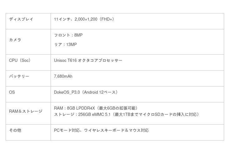 ノートパソコンのような実用性を持つタブレットが欲しいのであれば、PCモードとワイヤレスマウス&キーボードに対応した「Blackview Tab 11 WiFi」がオススメです。