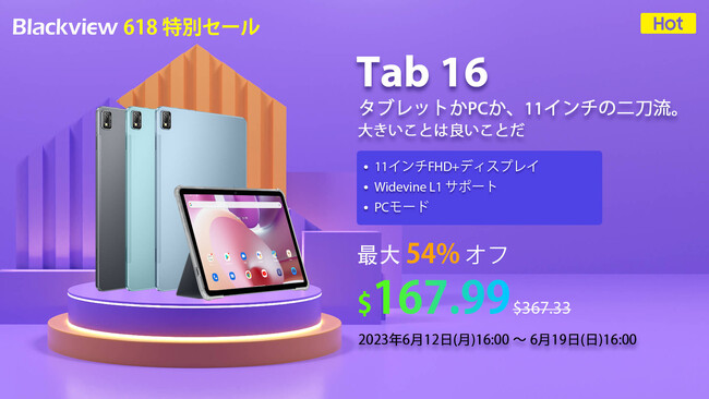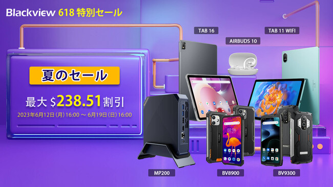 人気タブレットやスマホが最大238.51ドルOFF!Blackview 618ショッピングフェスティバル開催(2023年6月19日まで)