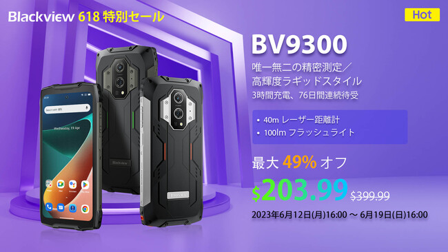 「Blackview 618 Shopping Festival」(Blackview 618ショッピングフェスティバル)は日本時間の 2023年6月12日(月)16:00 〜 6月19日(日)16:00 までの期間中に開催されます。