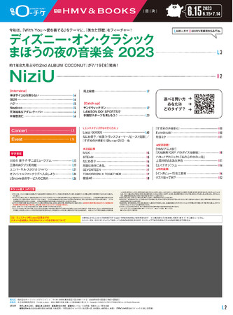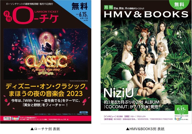 『月刊ローチケ』の表紙には、今年は「With You 〜愛を奏でる」をテーマに開催する「ディズニー・オン・クラシック まほうの夜の音楽会 2023」。そして、『月刊HMV&BOOKS』の表紙には、約1年8ヶ月ぶりの2nd ALBUM『COCONUT』を7/19(水)に発売する「NiziU」が登場!
